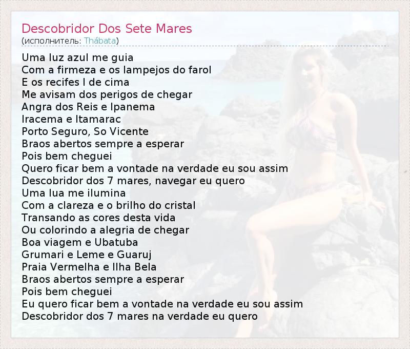 А как ты думаешь, о чем песня "Descobridor Dos Sete Mares" ?