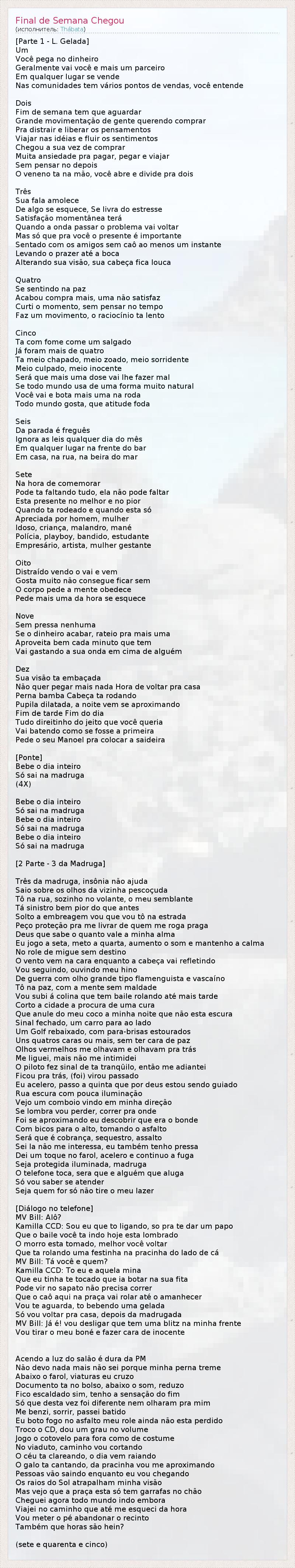 ГлавнаяИсполнителиThábataFinal de Semana Chegou