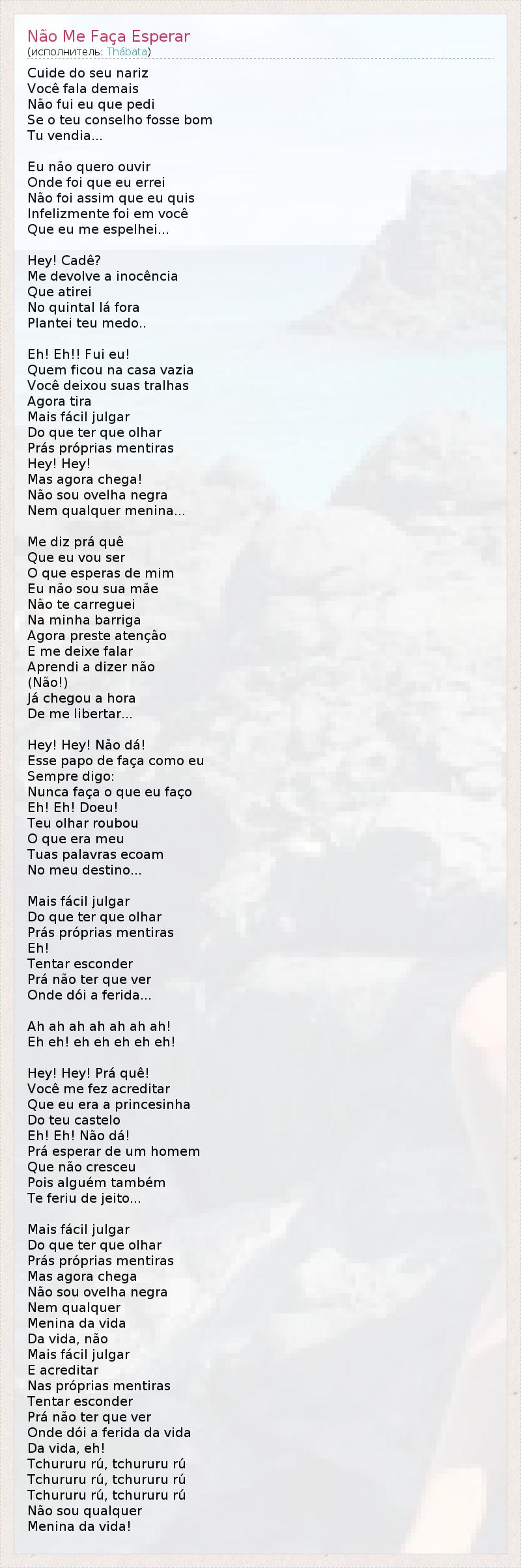 ГлавнаяИсполнителиThábataNão Me Faça Esperar