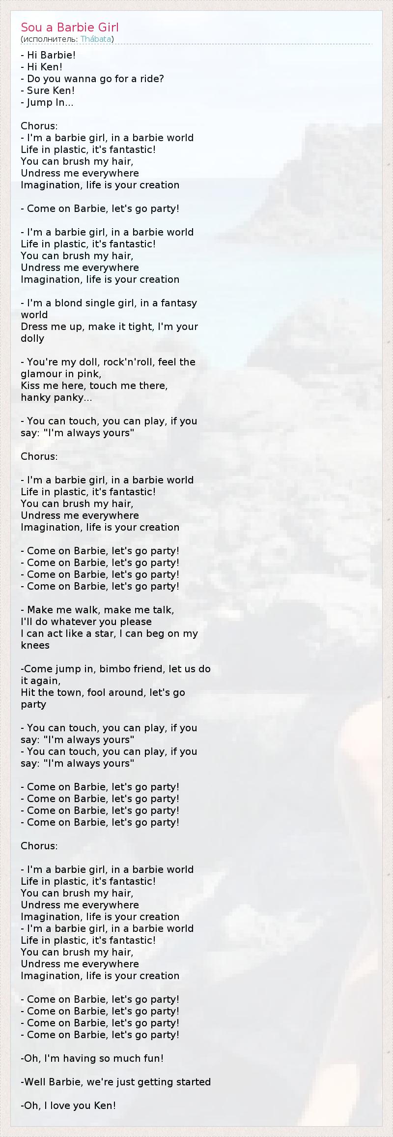 А как ты думаешь, о чем песня "Sou a Barbie Girl" ?
