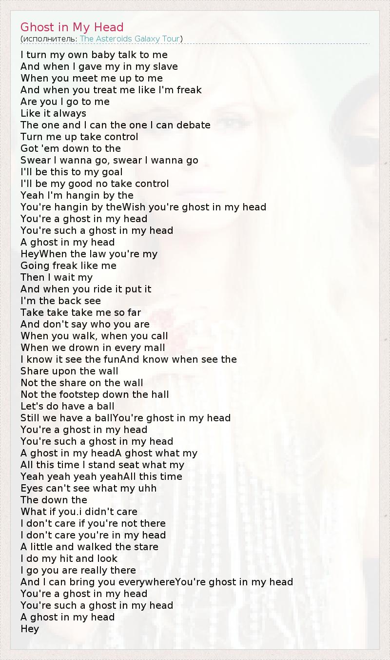А как ты думаешь, о чем песня "Ghost in My Head" ?