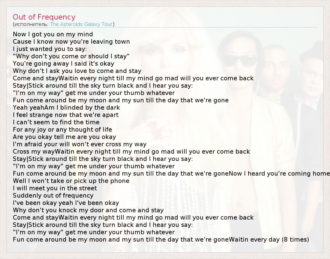 А как ты думаешь, о чем песня "Out of Frequency" ?