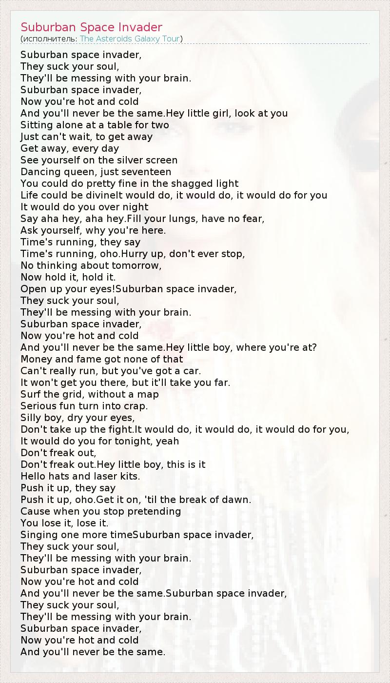 А как ты думаешь, о чем песня "Suburban Space Invader" ?