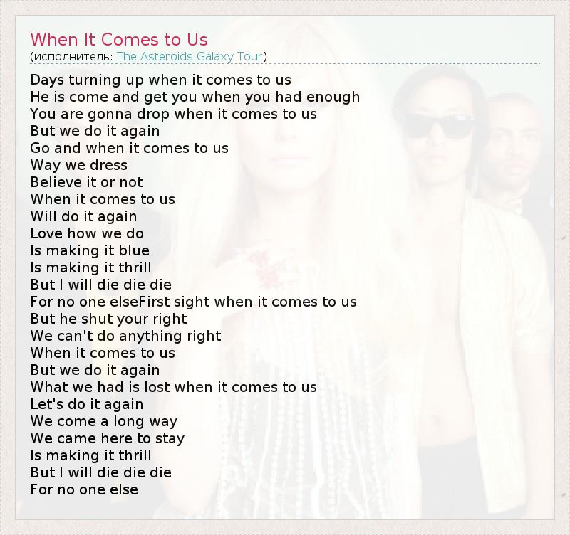 А как ты думаешь, о чем песня "When It Comes to Us" ?