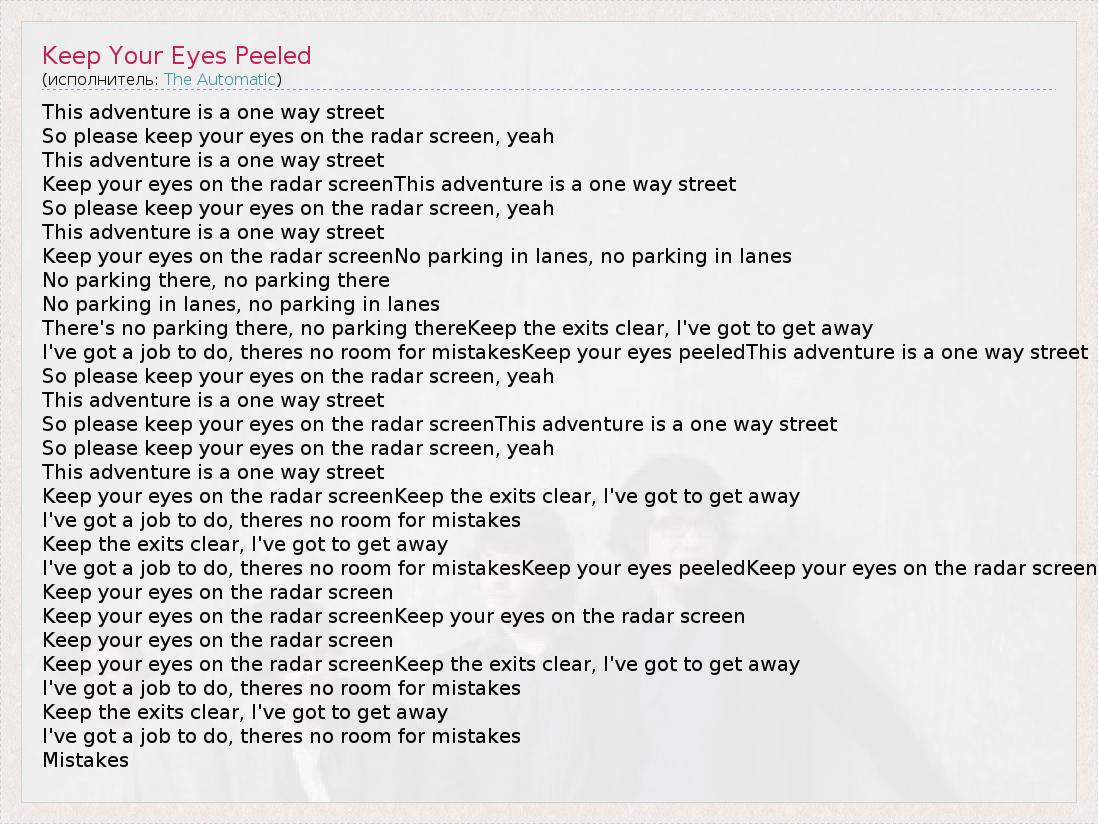 А как ты думаешь, о чем песня "Keep Your Eyes Peeled" ?