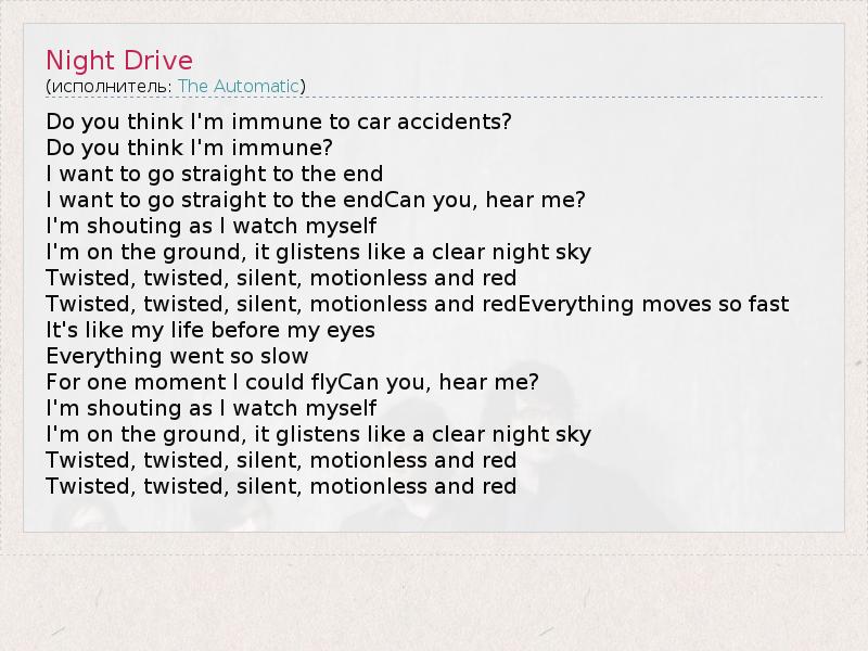 А как ты думаешь, о чем песня "Night Drive" ?
