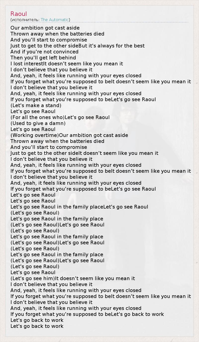 Это интересно:The Automatic - это четверо парней из британского города Кардифф. Группа появилась в 2003 году и изначально носила имя White Rabbit. Название The Automatic было утверждено участниками два года спустя и этот момент обозначил отправную точку в творчестве группы.В первоначальный состав входили солист и басист Робин Хокинс, гитарист Джеймс Фрост, играющий на синтезаторе и клавишных Алекс Пенни и барабанщик... продолжение