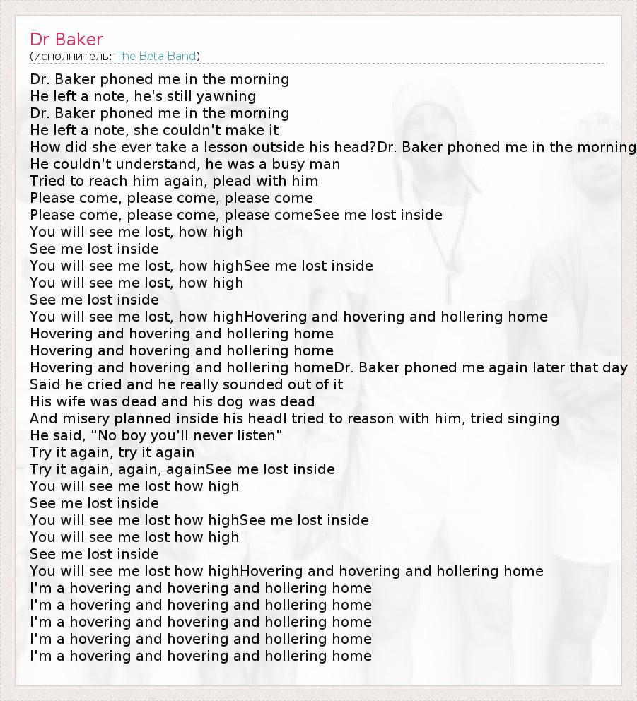А как ты думаешь, о чем песня "Dr Baker" ?