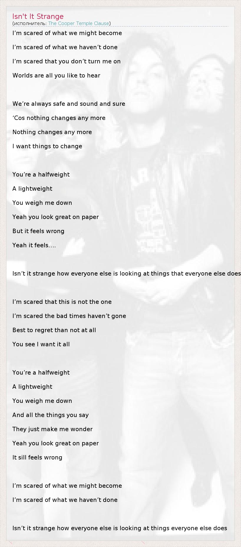 А как ты думаешь, о чем песня "Isn't It Strange" ?