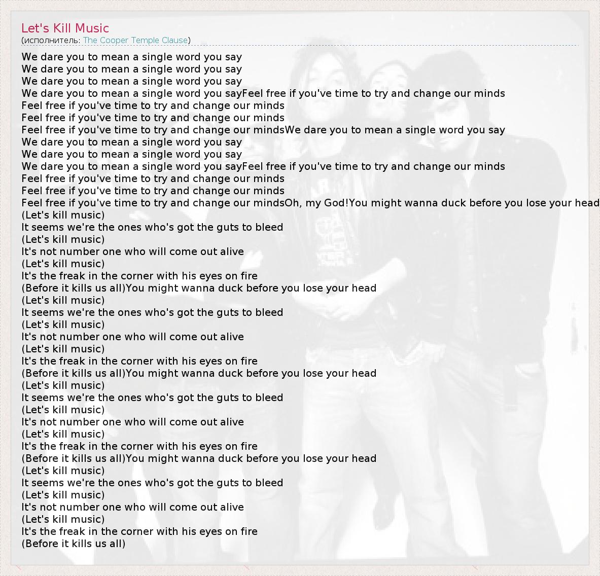 А как ты думаешь, о чем песня "Let's Kill Music" ?