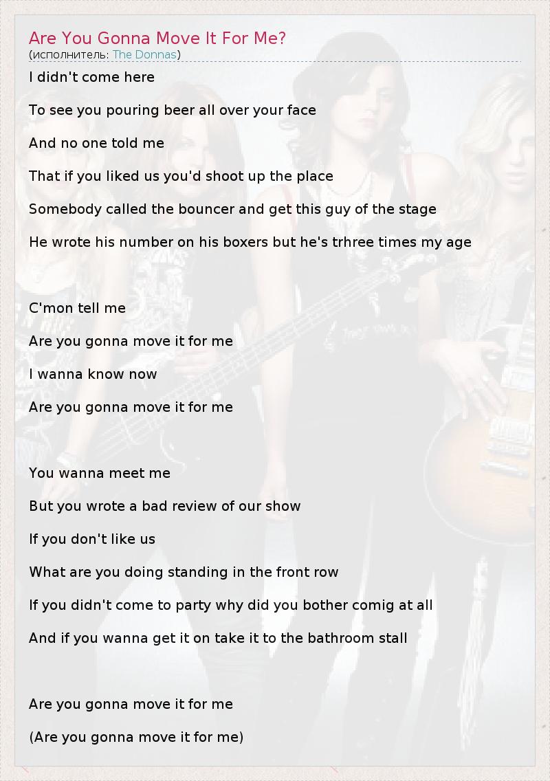 А как ты думаешь, о чем песня "Are You Gonna Move It For Me?" ?