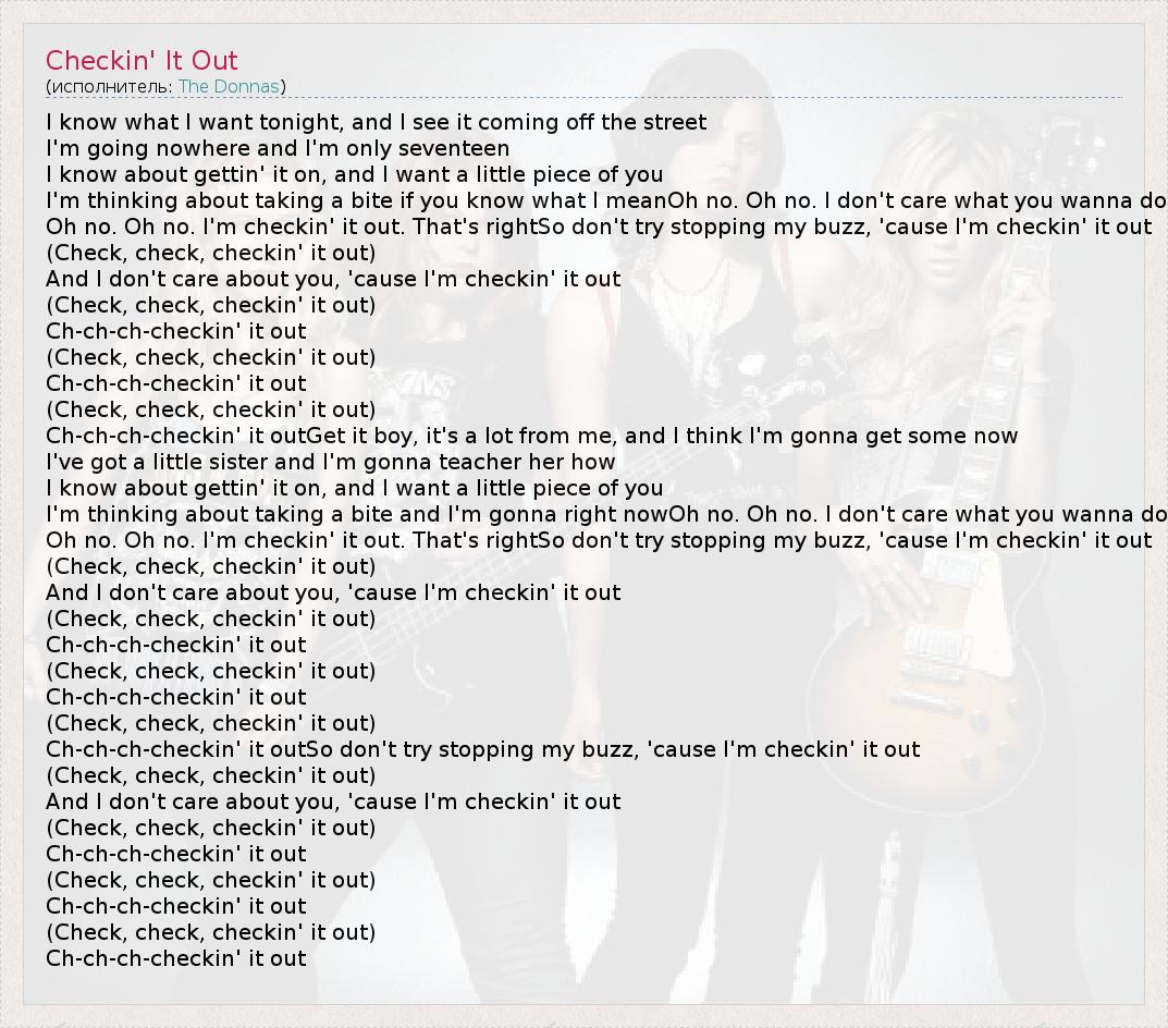 А как ты думаешь, о чем песня "Checkin' It Out" ?