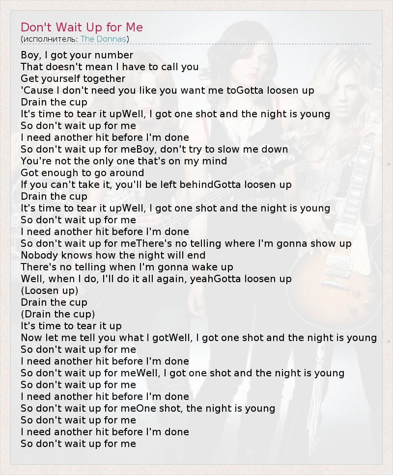 А как ты думаешь, о чем песня "Don't Wait Up for Me" ?