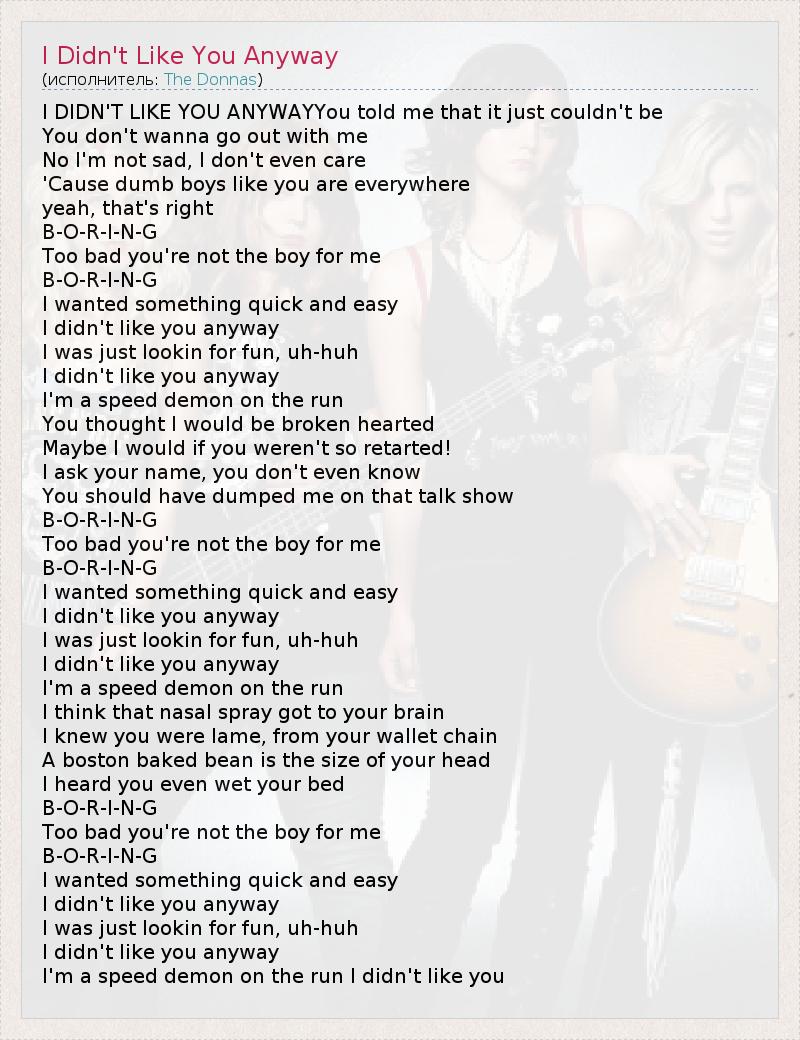 ГлавнаяИсполнителиThe DonnasI Didn't Like You Anyway