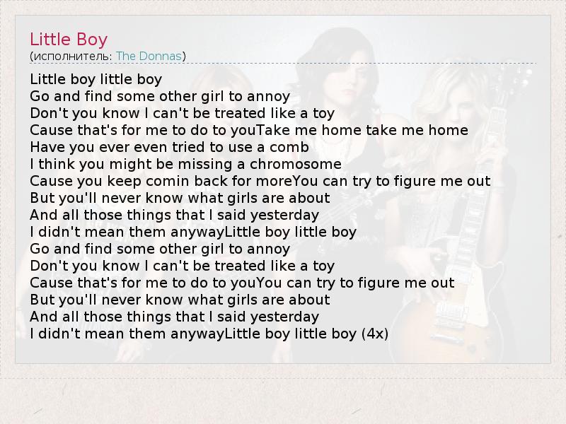 Это интересно:Девичья панк-шайка DONNAS, воистину является оравой малолетних матерей-героинь, ибо за короткий срок успела наплодить аж три альбома, каждый из которых был превознесен критикой до тинейджерских небес. И это несмотря на то, что девочки умеют гнать лишь три аккорда, писать совершенно одинаковые песни, и абсолютно не заботятся об интеллектуальной стороне своей музыки.DONNAS отсчитывают свою... продолжение