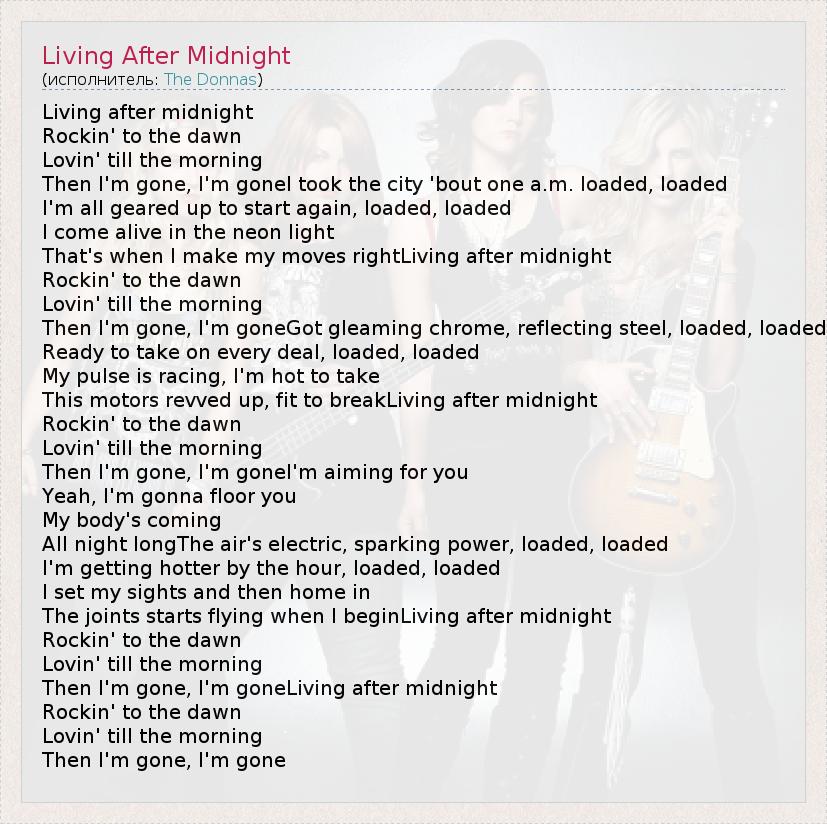 А как ты думаешь, о чем песня "Living After Midnight" ?