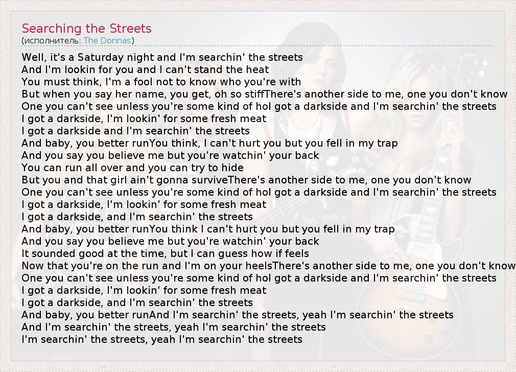 I'm searchin' the streets, yeah I'm searchin' the streets