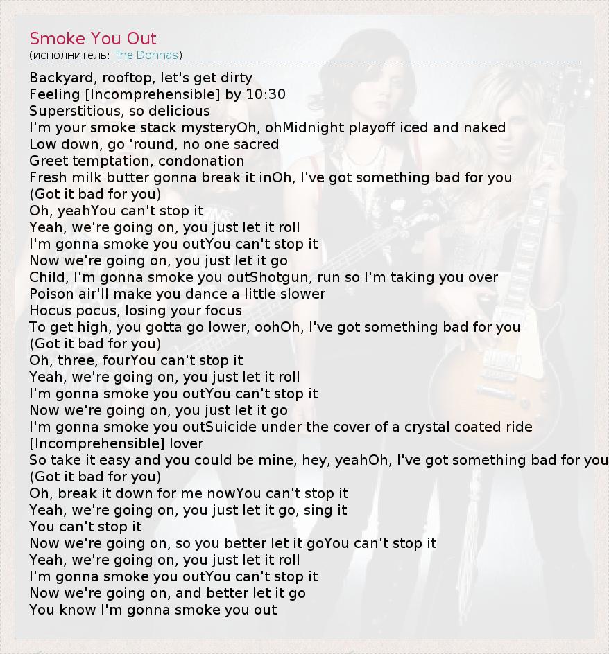 А как ты думаешь, о чем песня "Smoke You Out" ?