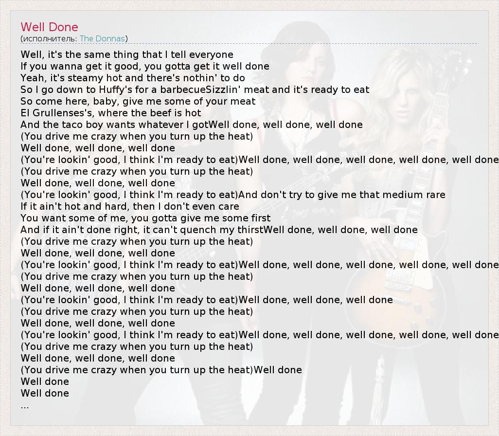 (You're lookin' good, I think I'm ready to eat)Well done, well done, well done, well done, well done