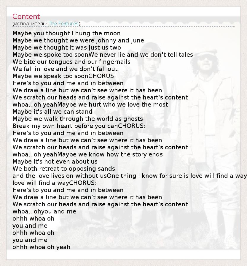 Это интересно:The Features - инди-рок группа из США штата Теннесси. The Features - это квартет, состоящий из Matthew Pelham, Roger Dabbs, Mark Bond, and Rollum Haas. В 2007 году стали победителями в международном концерте Diesel:U:Music Awards, заняв первое место в категории Rock/Indie и так же в Public Vote award. После победы в региональных соревнованиях "Bonnaroo 8 Off 8th" в Нэшвиле, группа участвовала в 2009 году в Bonnaroo Music Festival. В 2010 году группа открывала концерт... продолжение