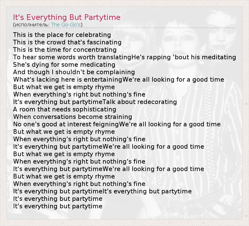 ГлавнаяИсполнителиThe Go-Go'sIt's Everything But Partytime