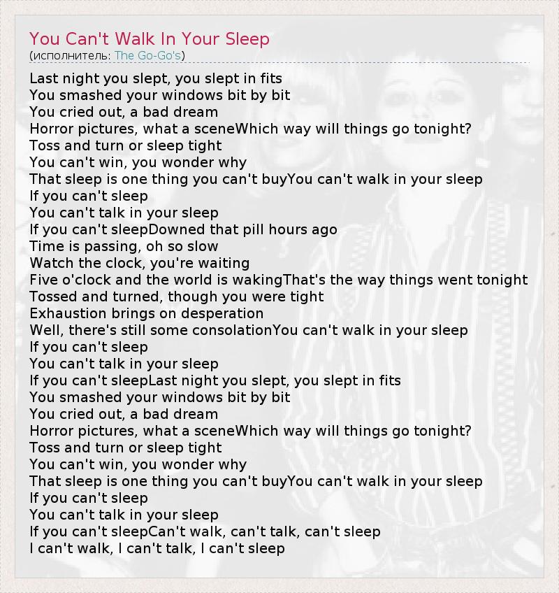 А как ты думаешь, о чем песня "You Can't Walk In Your Sleep" ?