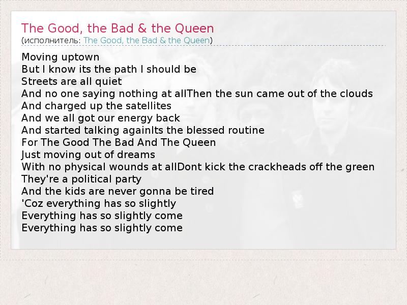 А как ты думаешь, о чем песня "The Good, the Bad & the Queen" ?