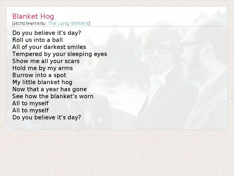 А как ты думаешь, о чем песня "Blanket Hog" ?