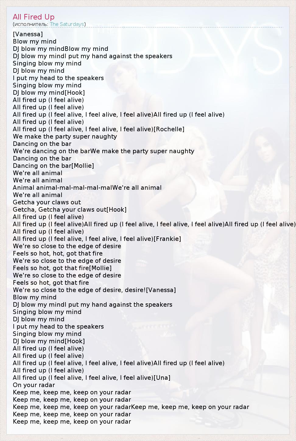 All fired up (I feel alive)All fired up (I feel alive, I feel alive, I feel alive)All fired up (I feel alive)