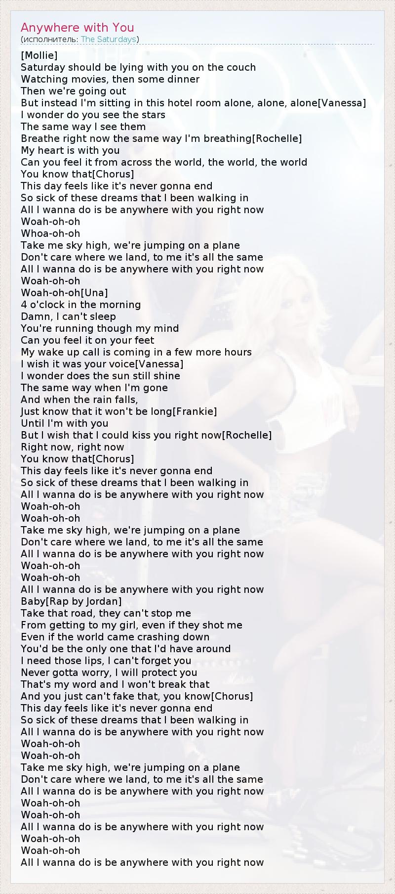 А как ты думаешь, о чем песня "Anywhere with You" ?