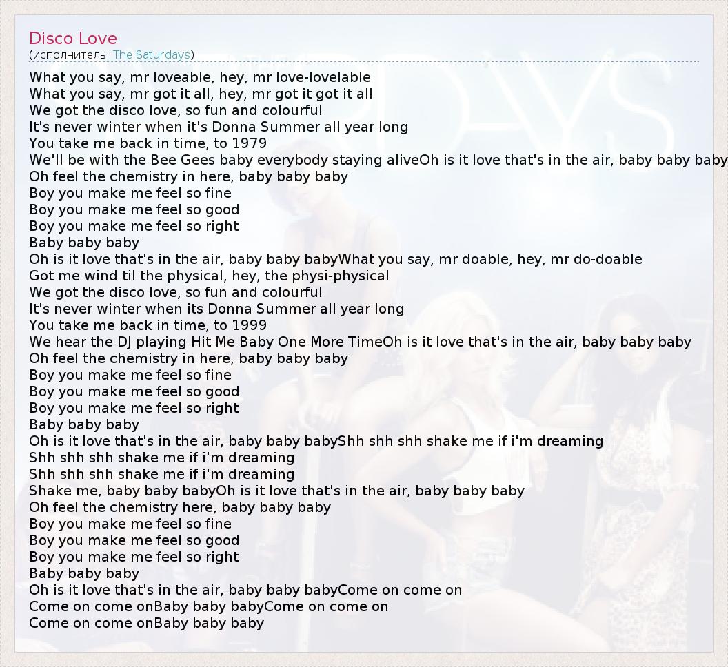 We'll be with the Bee Gees baby everybody staying aliveOh is it love that's in the air, baby baby baby
