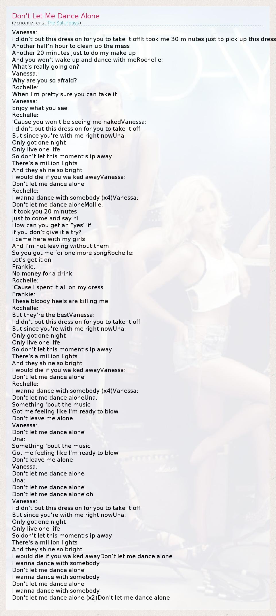 ГлавнаяИсполнителиThe SaturdaysDon't Let Me Dance Alone