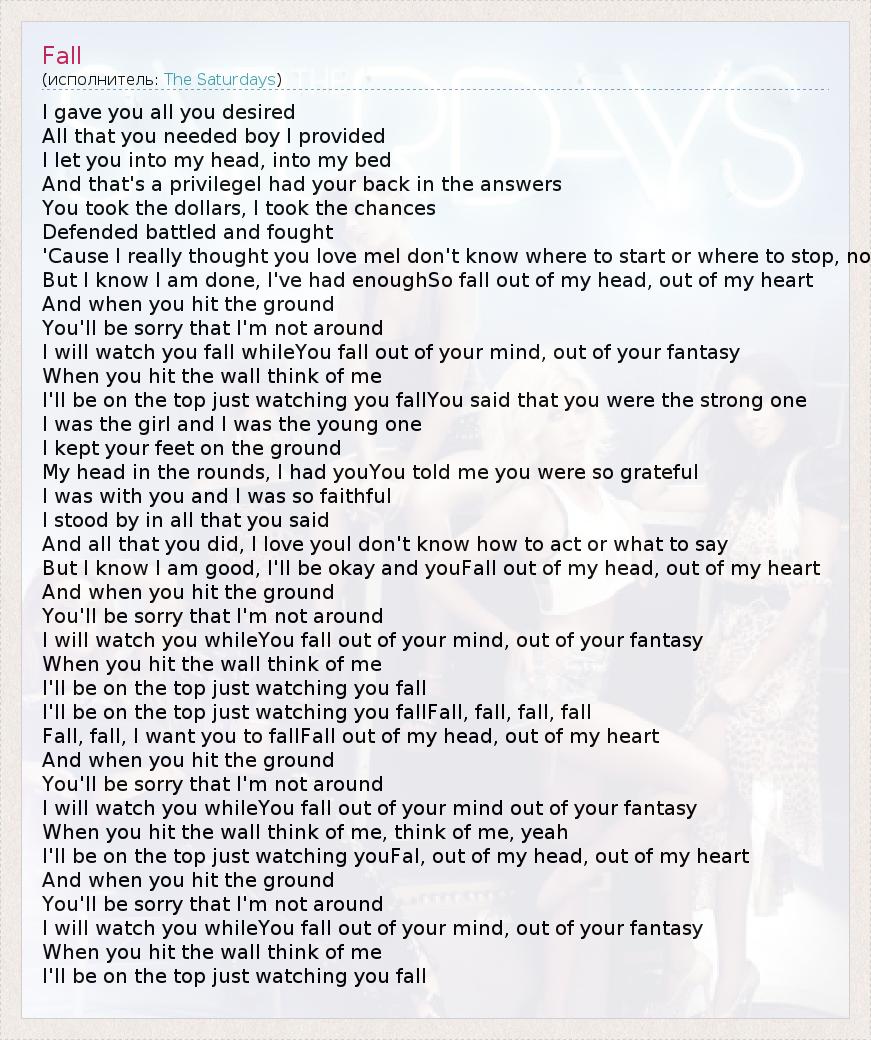 А как ты думаешь, о чем песня "Fall" ?