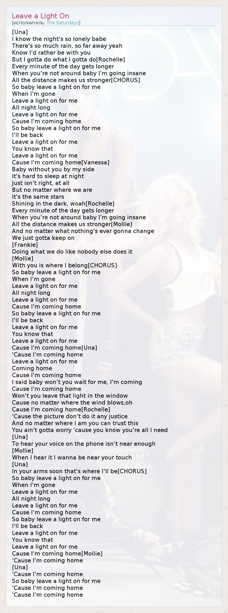 А как ты думаешь, о чем песня "Leave a Light On" ?