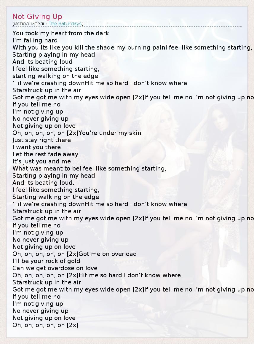 А как ты думаешь, о чем песня "Not Giving Up" ?
