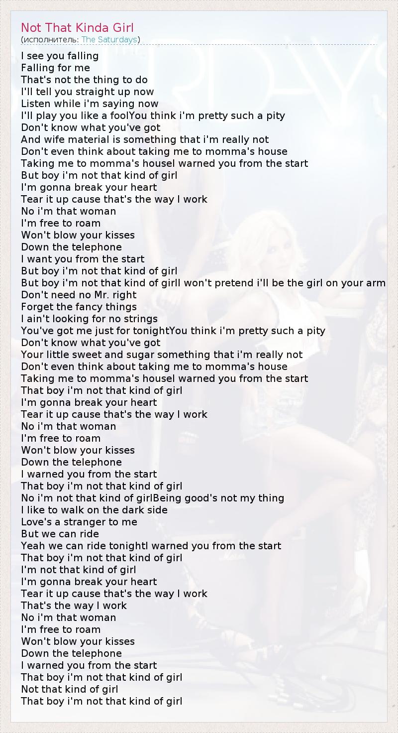 But boy i'm not that kind of girlI won't pretend i'll be the girl on your arm