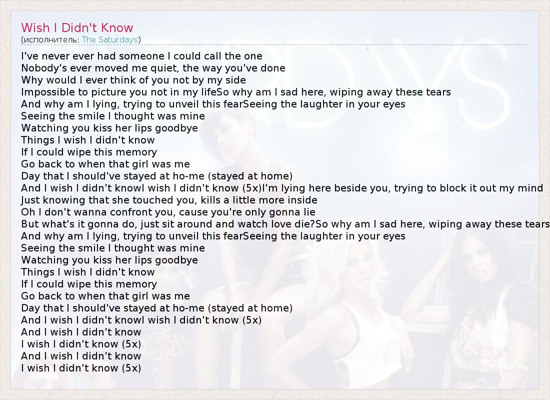 А как ты думаешь, о чем песня "Wish I Didn't Know" ?
