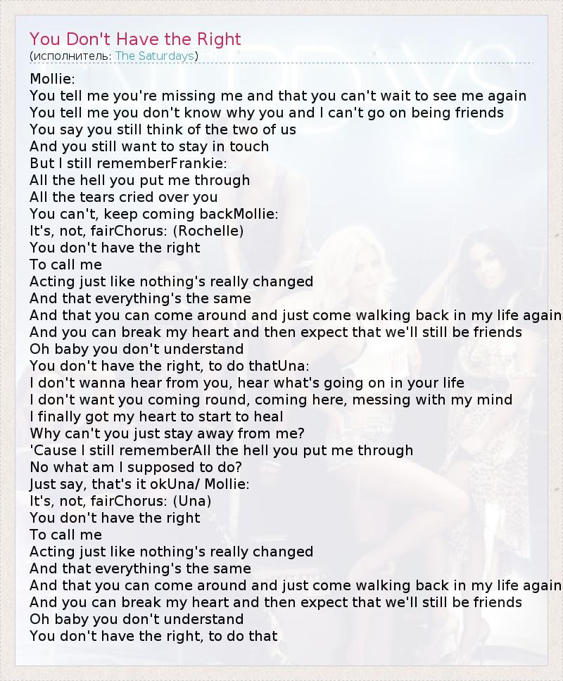 ГлавнаяИсполнителиThe SaturdaysYou Don't Have the Right