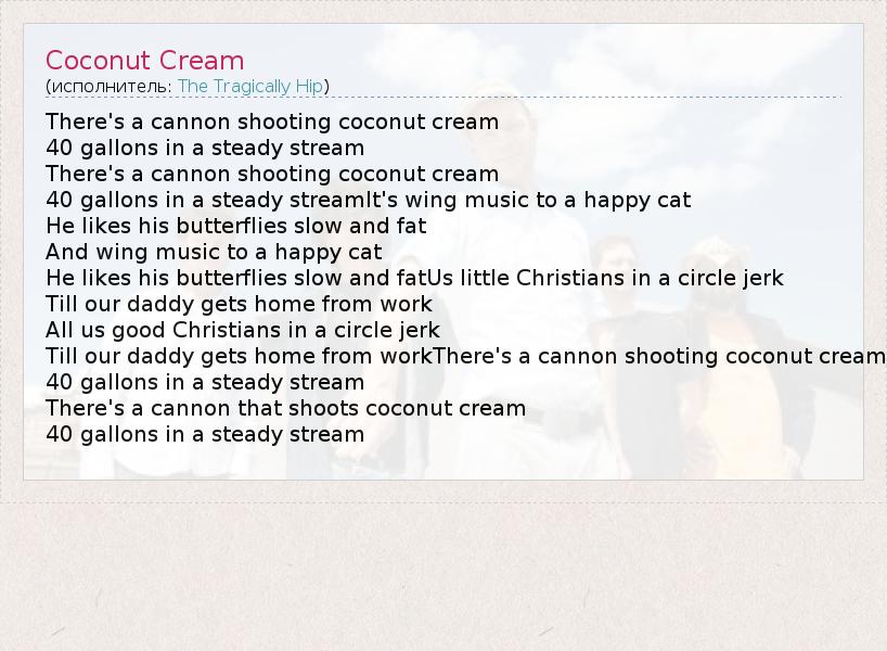 А как ты думаешь, о чем песня "Coconut Cream" ?