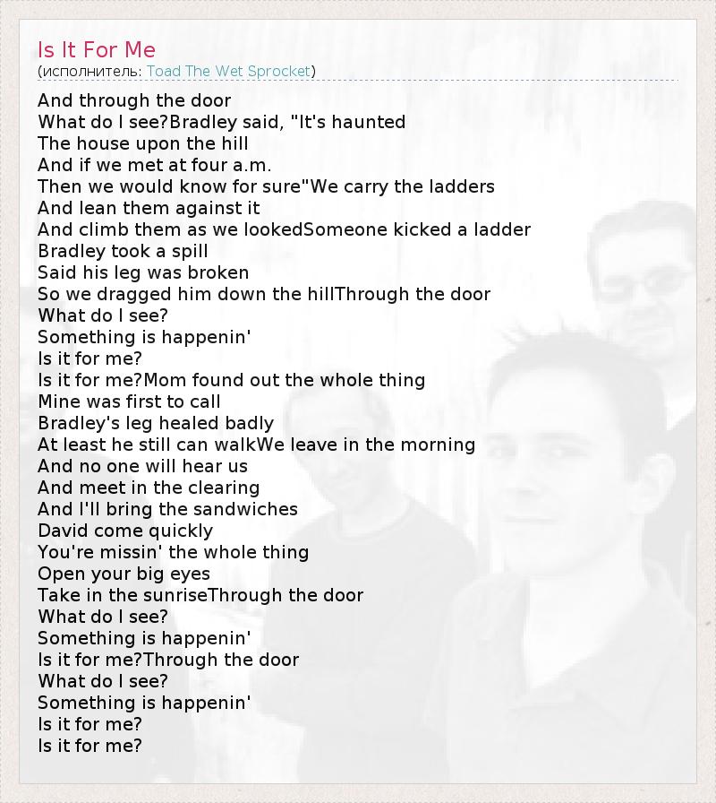А как ты думаешь, о чем песня "Is It For Me" ?