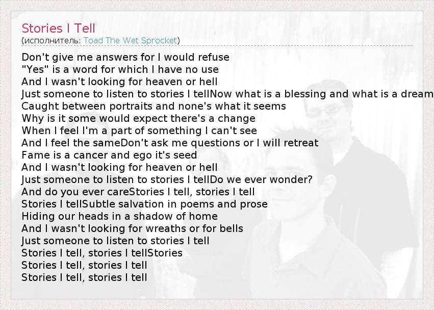 А как ты думаешь, о чем песня "Stories I Tell" ?