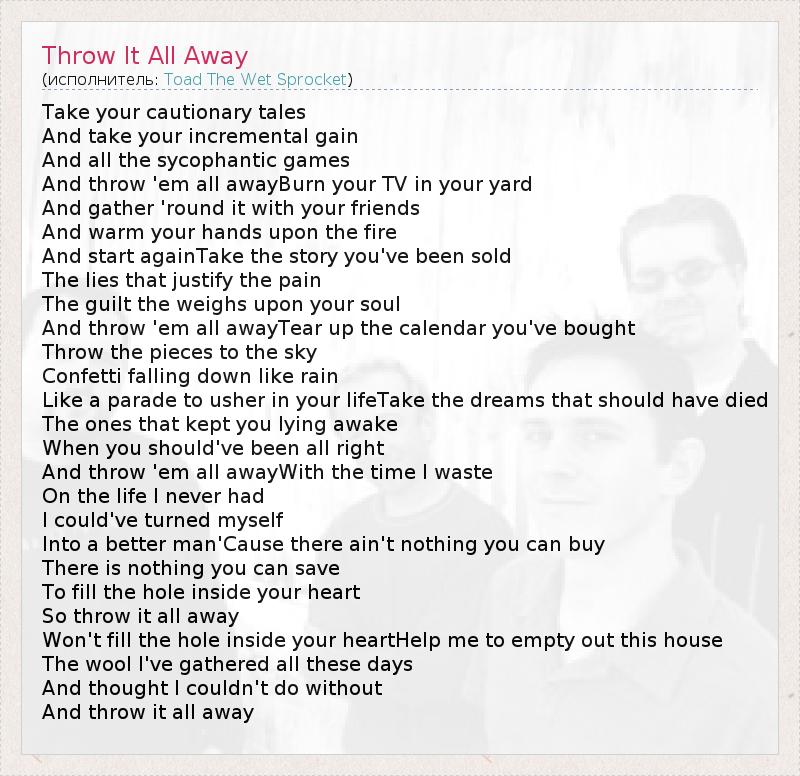 А как ты думаешь, о чем песня "Throw It All Away" ?