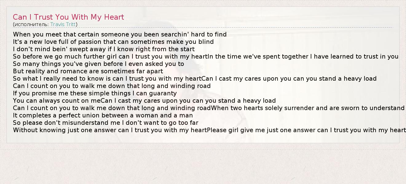 ГлавнаяИсполнителиTravis TrittCan I Trust You With My Heart