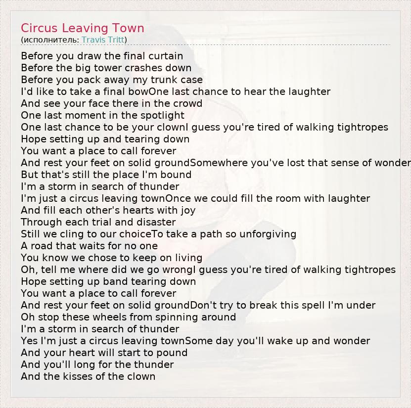 А как ты думаешь, о чем песня "Circus Leaving Town" ?