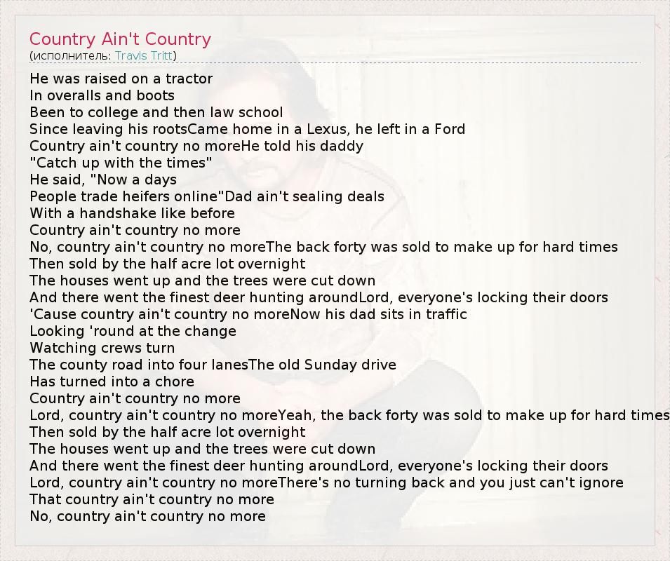 А как ты думаешь, о чем песня "Country Ain't Country" ?