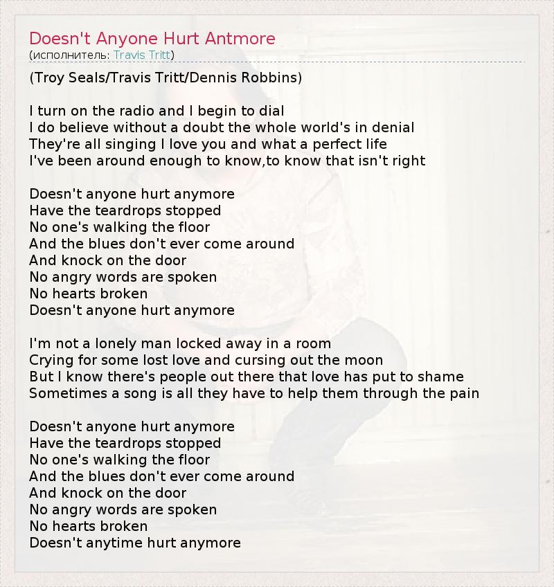 ГлавнаяИсполнителиTravis TrittDoesn't Anyone Hurt Antmore