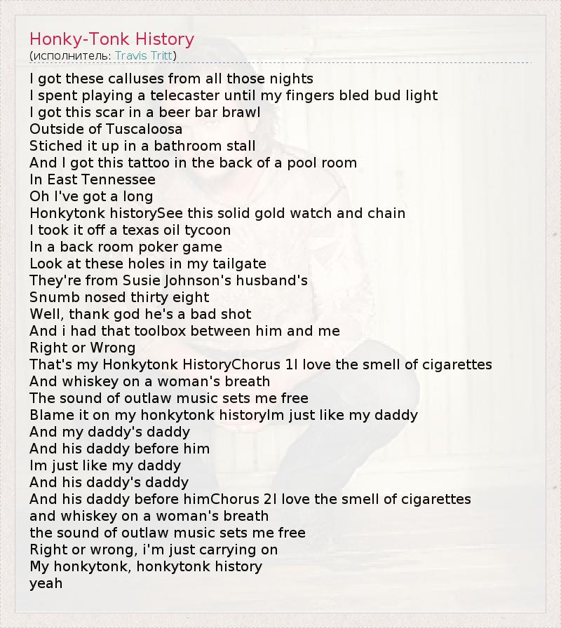 А как ты думаешь, о чем песня "Honky-Tonk History" ?