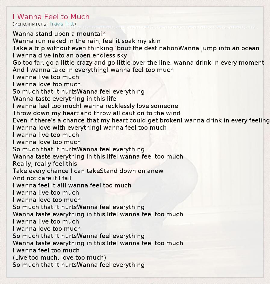 А как ты думаешь, о чем песня "I Wanna Feel to Much" ?
