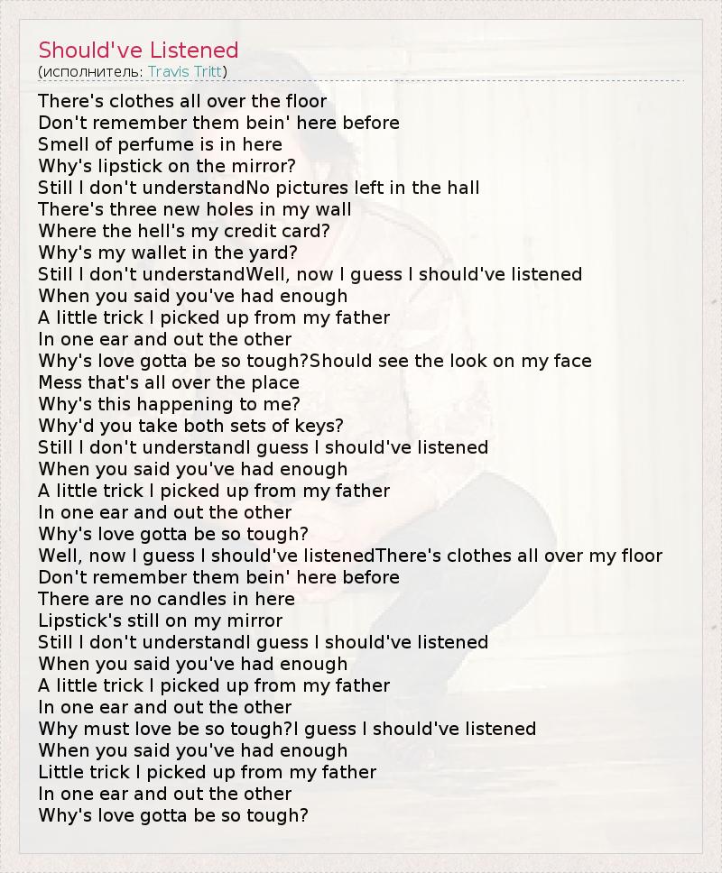 А как ты думаешь, о чем песня "Should've Listened" ?