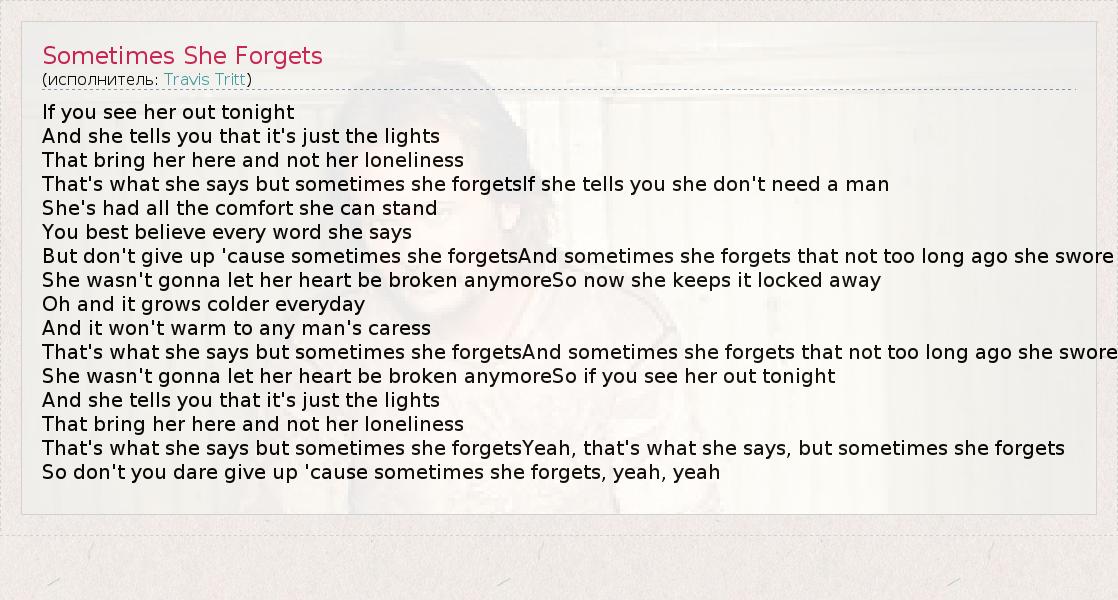 А как ты думаешь, о чем песня "Sometimes She Forgets" ?